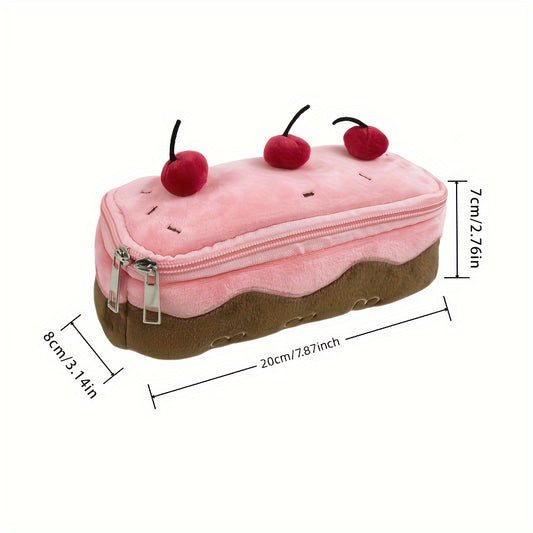 Astuccio portapenne a forma di torta con ciliegie, grazioso astuccio portapenne in peluche con cerniera, grande capacità, organizer portatile per cancelleria