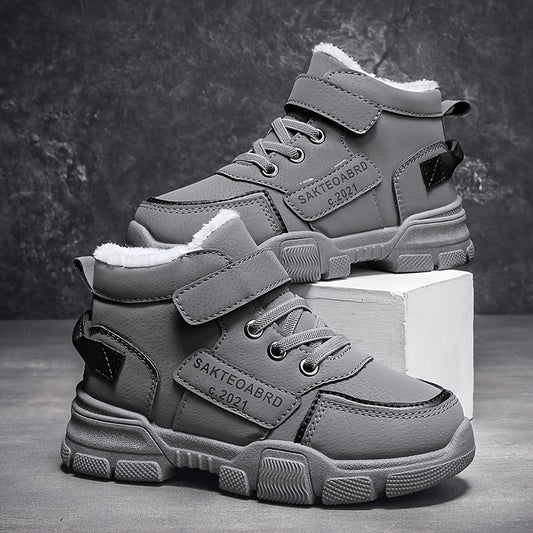 Boy's Trendy Snow Boots With Warm Plush Lining, Comfy Non Slip Casual Soft Sole Sneakers, Winter