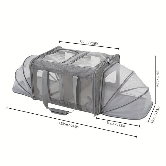 Expandable Cat Carrier Bag, 17.3x20.9x13 inches, Contemporary Style, Deep Gray, Portable Pet Travel Cage with Mesh Windows & Shoulder Strap