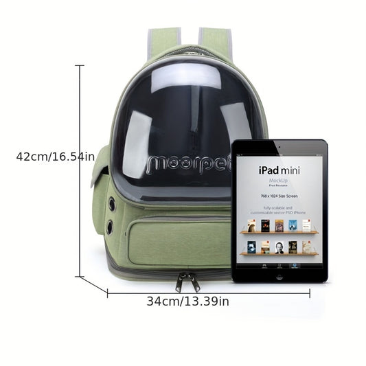 Fashion Style Solid Color Pet Backpack, Breathable Cat Carrier with Transparent Bubble, Large Space Capsule Backpack for Cats and Small Dogs up to 18lbs, Durable Oxford Cloth Zippered Bag for Travel and Hiking - Universal Fit