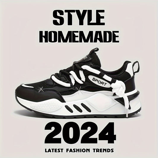 Double Lace Trendy Platform Sneakers, Soft Sole Comfy Jogging Shoes For All Seasons