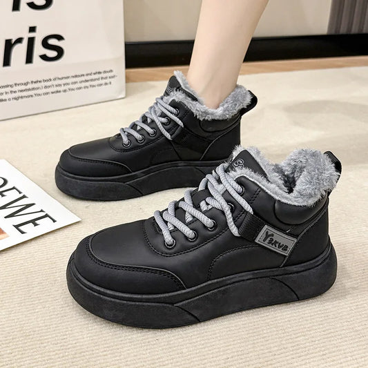 Stivali da neve da donna imbottiti con lacci eleganti con tacco medio Scarpe da donna con lacci Y2k Peluche protettivo Comodo di alta qualità 39