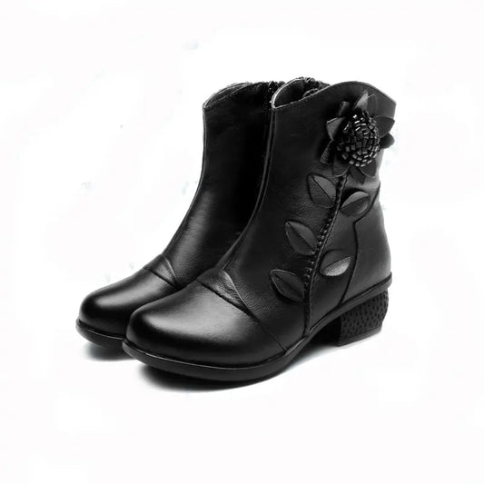 Stivali da donna scarpe donna scarpa a tacco basso in vera pelle Vintage fatta a mano punta tonda scarpe di alta qualità scarpe moda invernale donna
