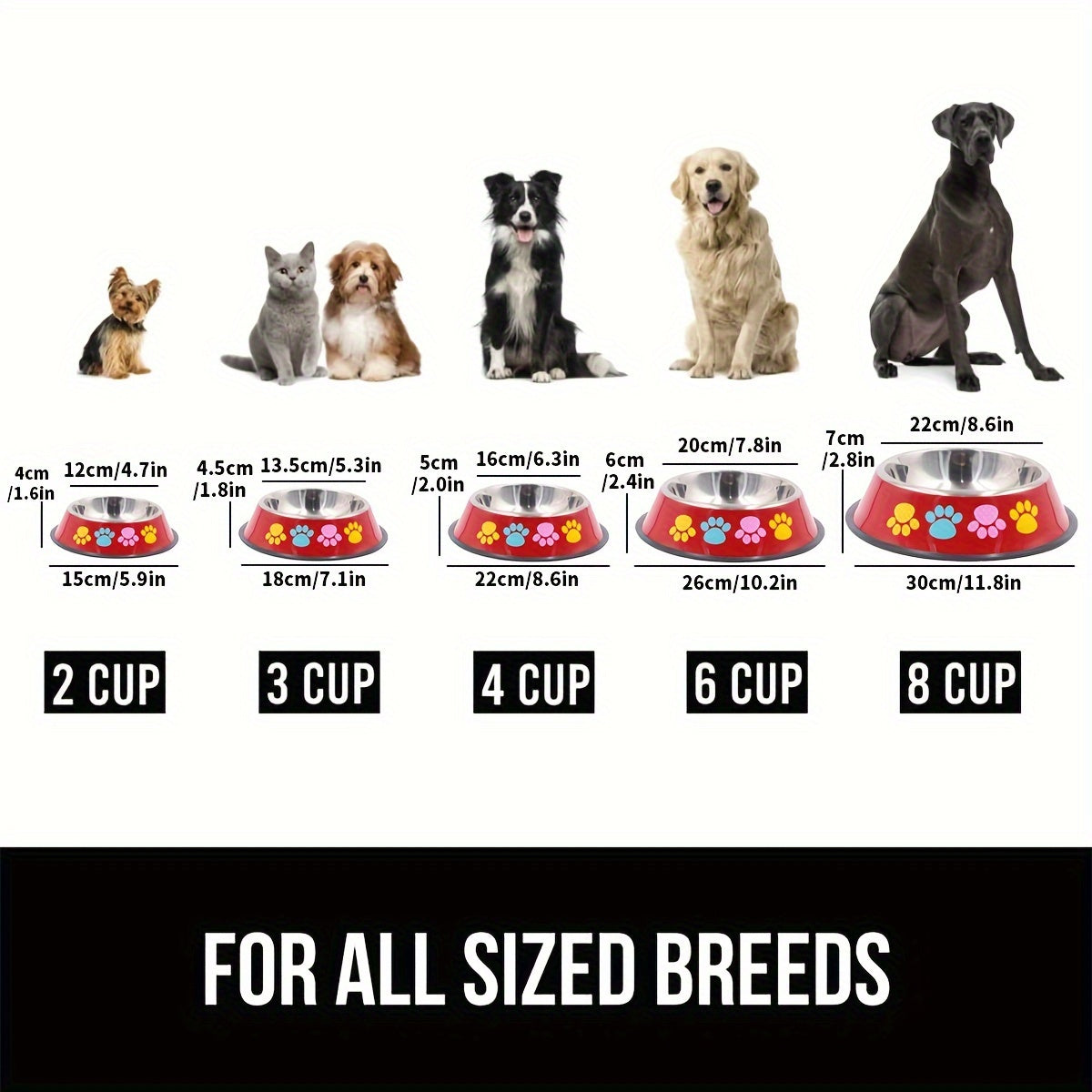 Adorabile ciotola per cani con stampa a zampa - Acciaio inossidabile, antiscivolo e antiruggine, resistente stazione di alimentazione per il tuo amico peloso - Elegante bacinella per acqua e cibo