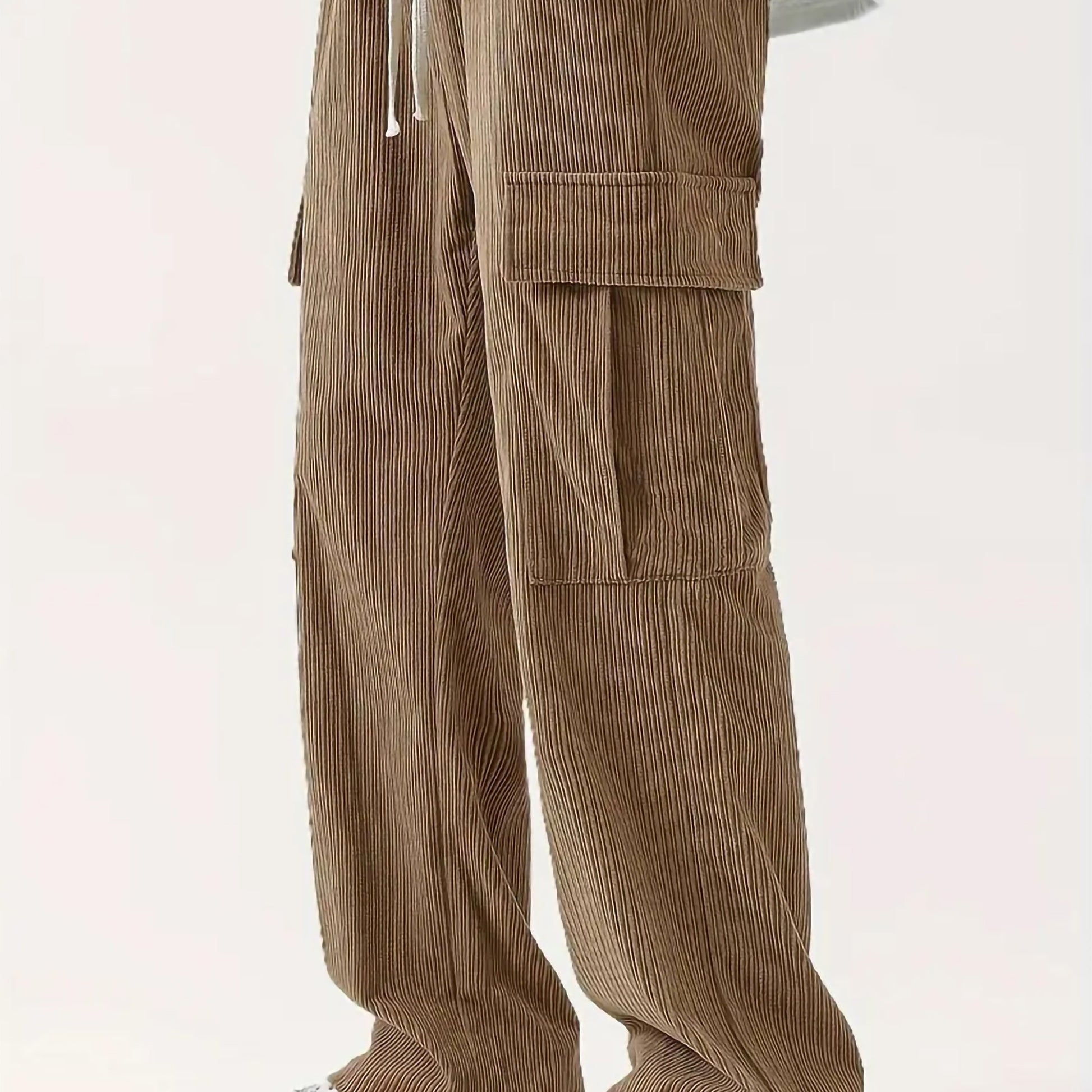 Pantaloni cargo da uomo in velluto a coste con tasche multiple e patta, pantaloni larghi e casual da esterno, pantaloni da lavoro da uomo per escursionismo, pesca e pesca