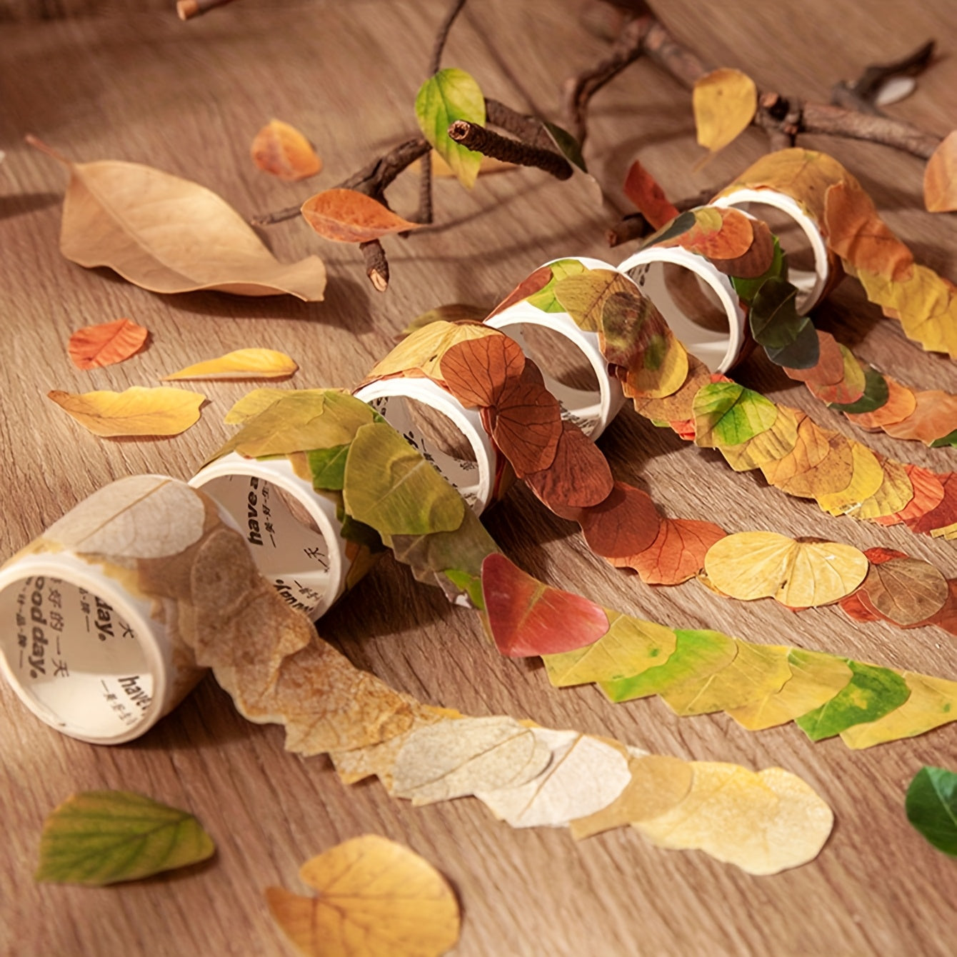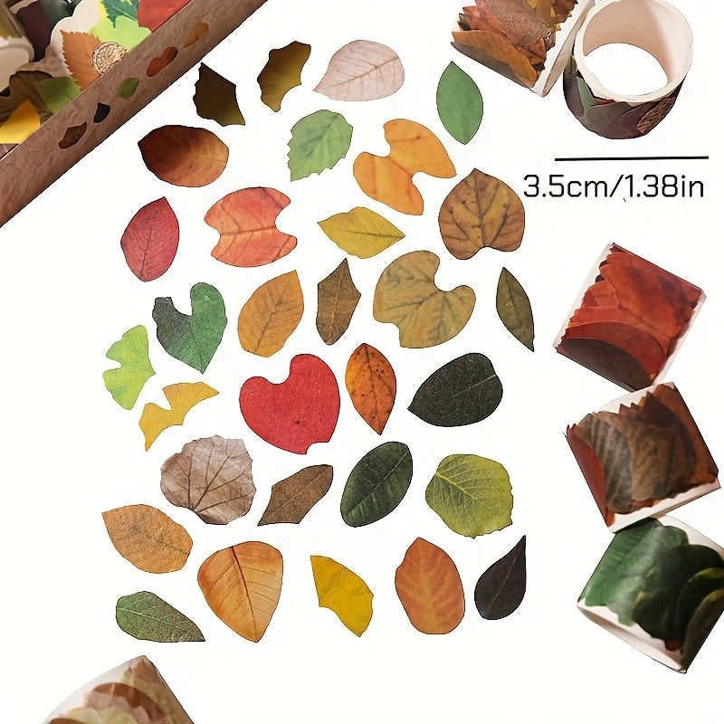Un rotolo di 50 bellissime foglie finte, perfette per adesivi di cancelleria artistica per il ritorno a scuola, adatte per la creazione di cartoline, adesivi per confezioni regalo, segnalibri, nastro adesivo per regali