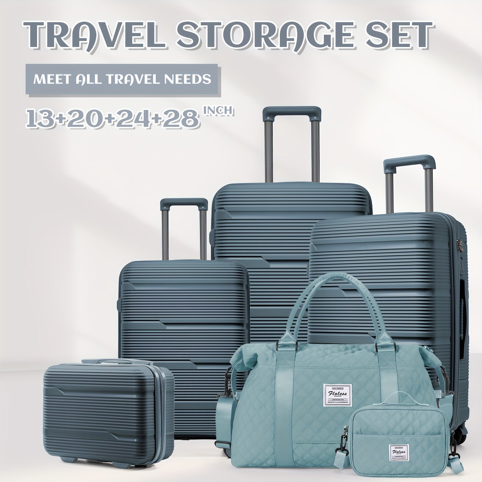 Set di valigie da viaggio Coofay, 33,02-71,12 cm, con ruote silenziose, materiale PP, valigie da cabina e da stiva resistenti, beauty case e beauty case, versatile attrezzatura da viaggio
