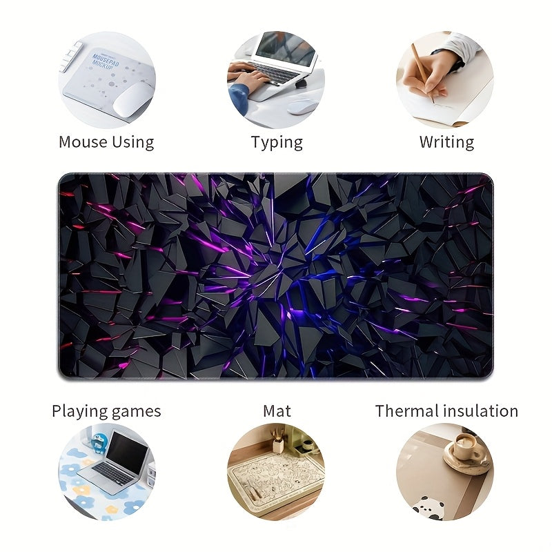 Tappetino da scrivania e mouse da gioco extra large - Design futuristico viola neon e nero con effetto neon luminoso, base in gomma antiscivolo, superficie liscia per PC, ufficio