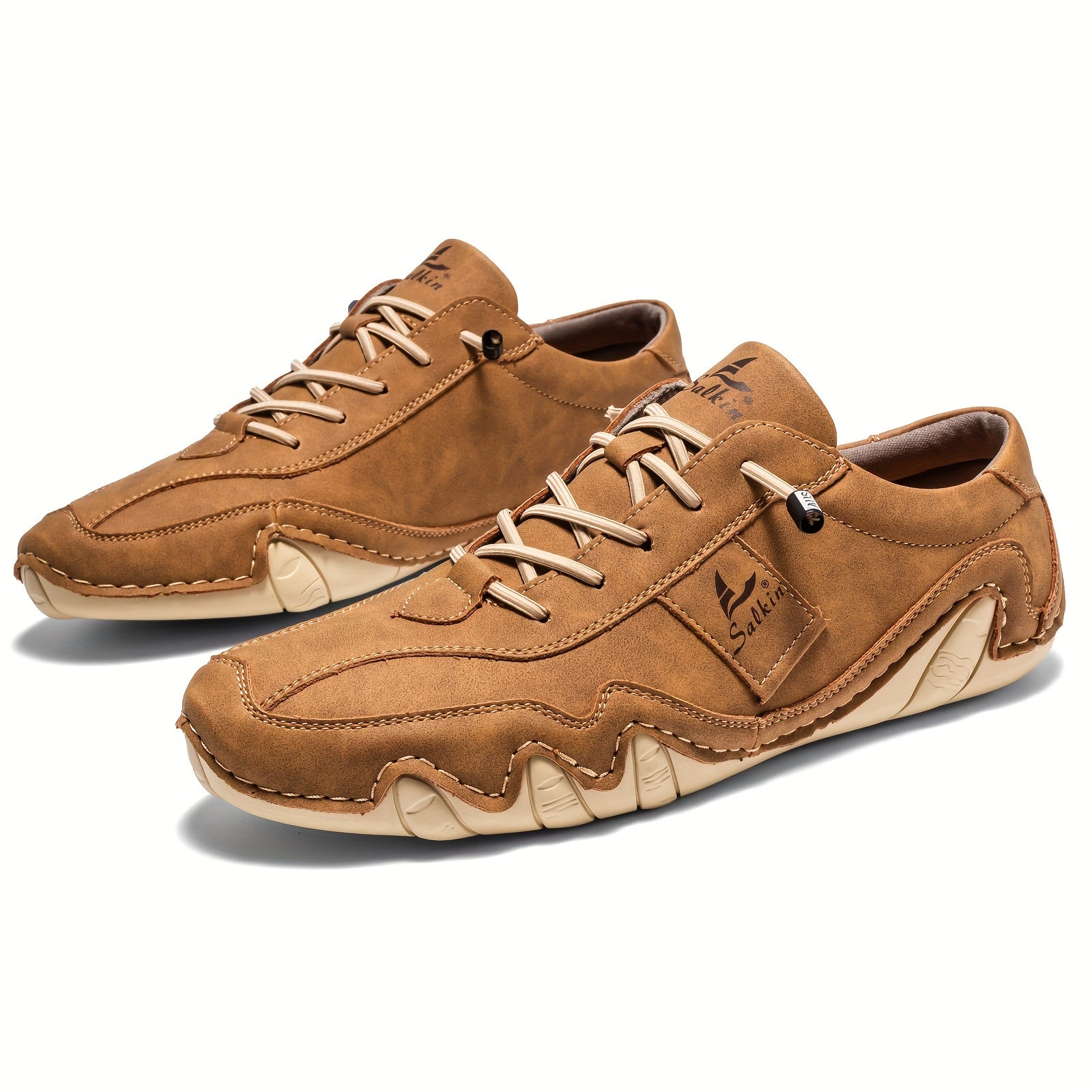 New Retro Style Stitching Casual Sneakers, Breathable Wear-resistant Non Slip Lace Up Shoes For Men's Outdoor Activities
