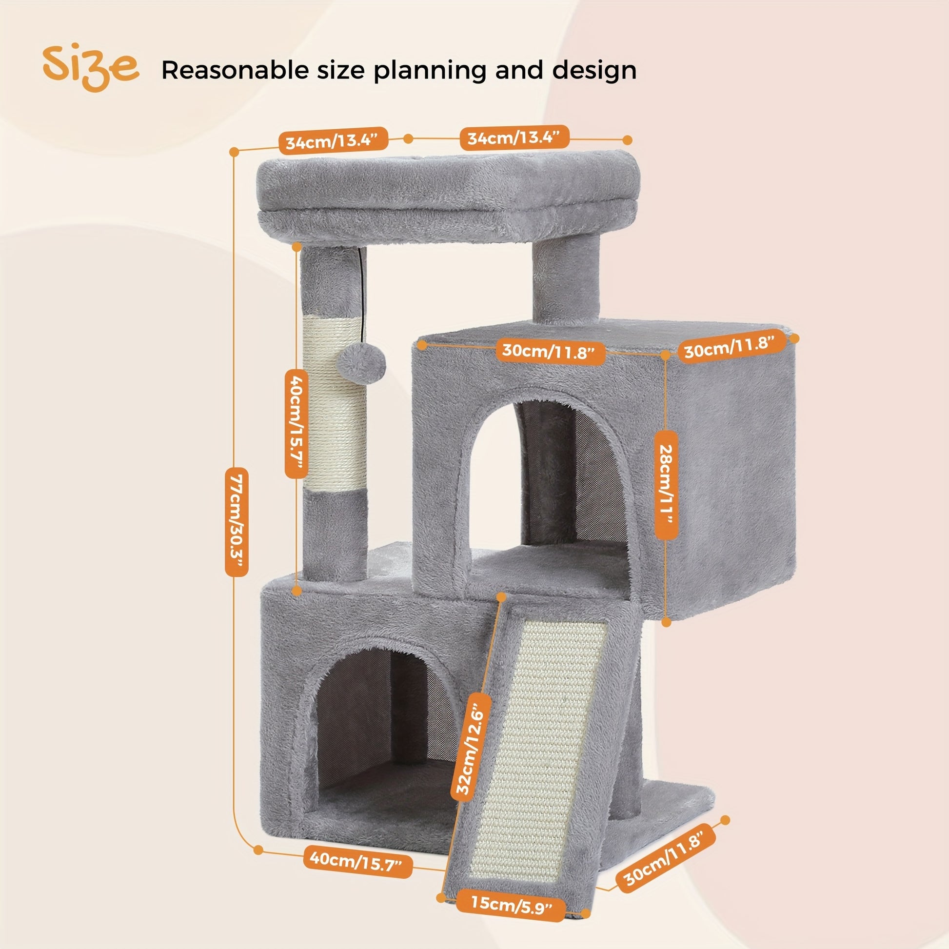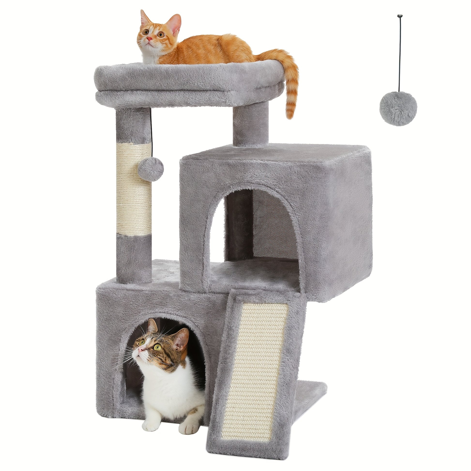Pawz Road Cat Scratching Post with Dual Condos for Indoor Cats, All-in-One Cat House with Padded Perch, Scratching Ramp And Posts, with Interchangeable Balls