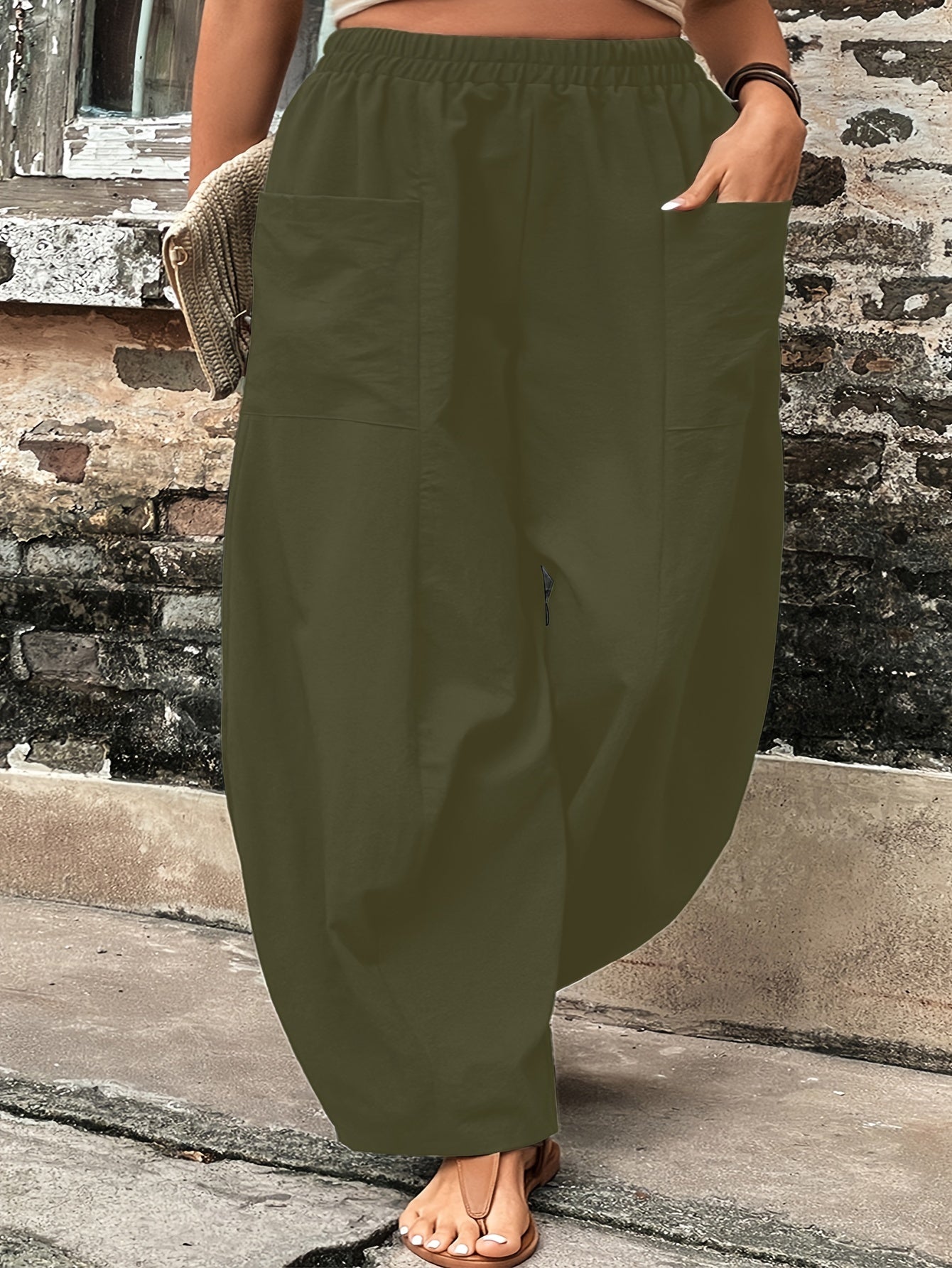 Plus Size Comfort Pocket Pants - Soft Stretch, Roomy Baggy Style - Curvy Womens Casual Fashion with Elastic Waist and Flattering Fit