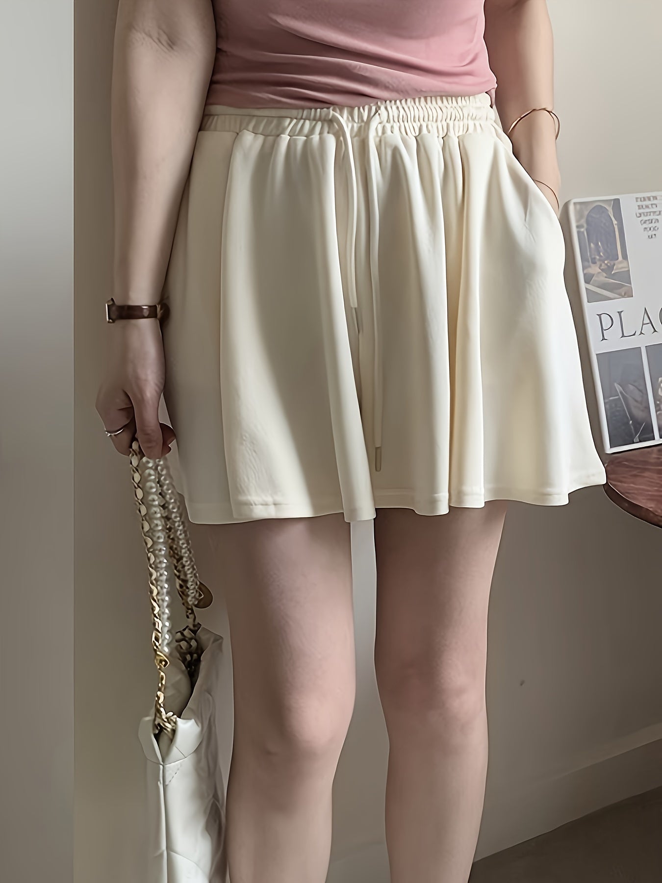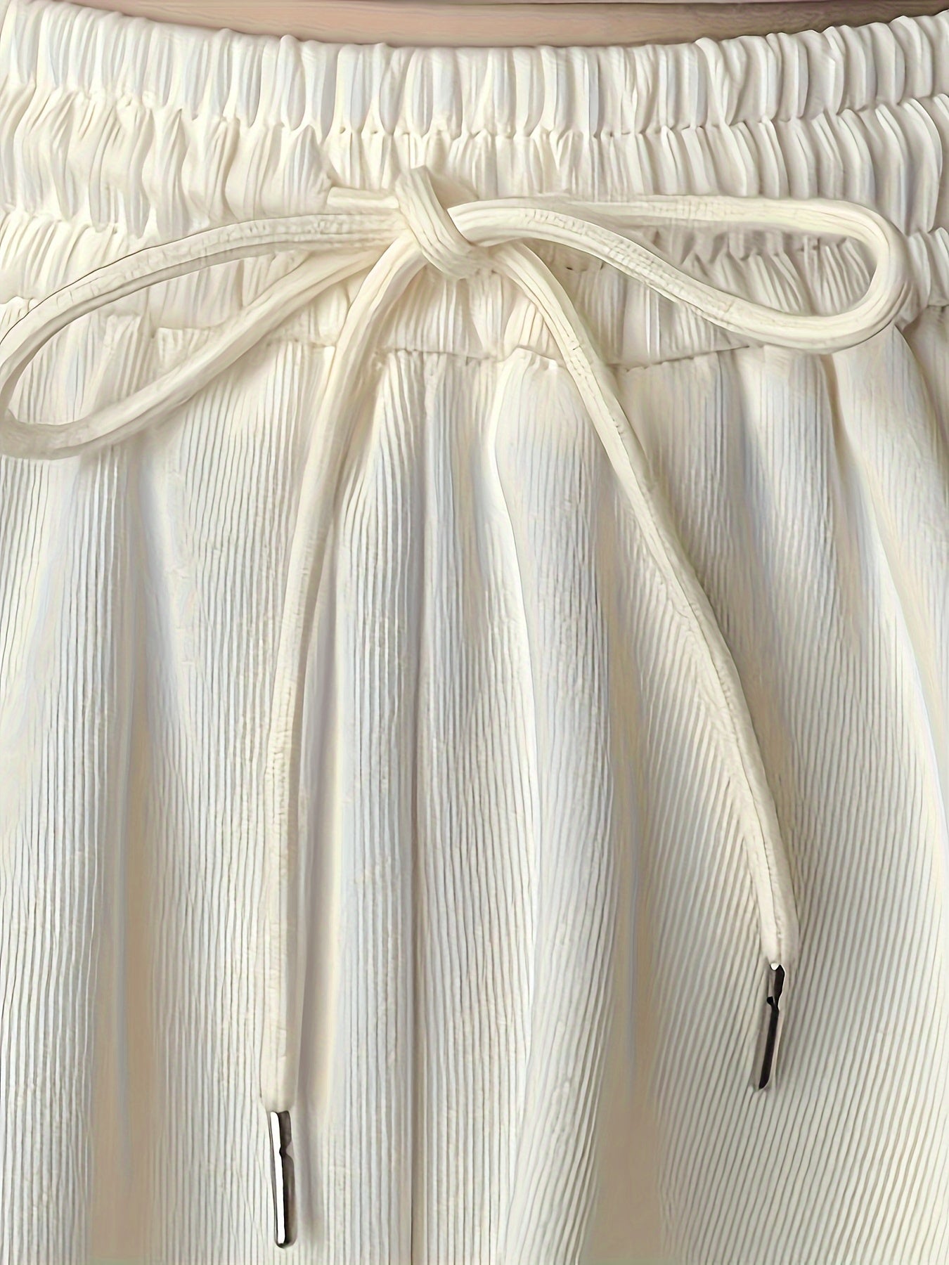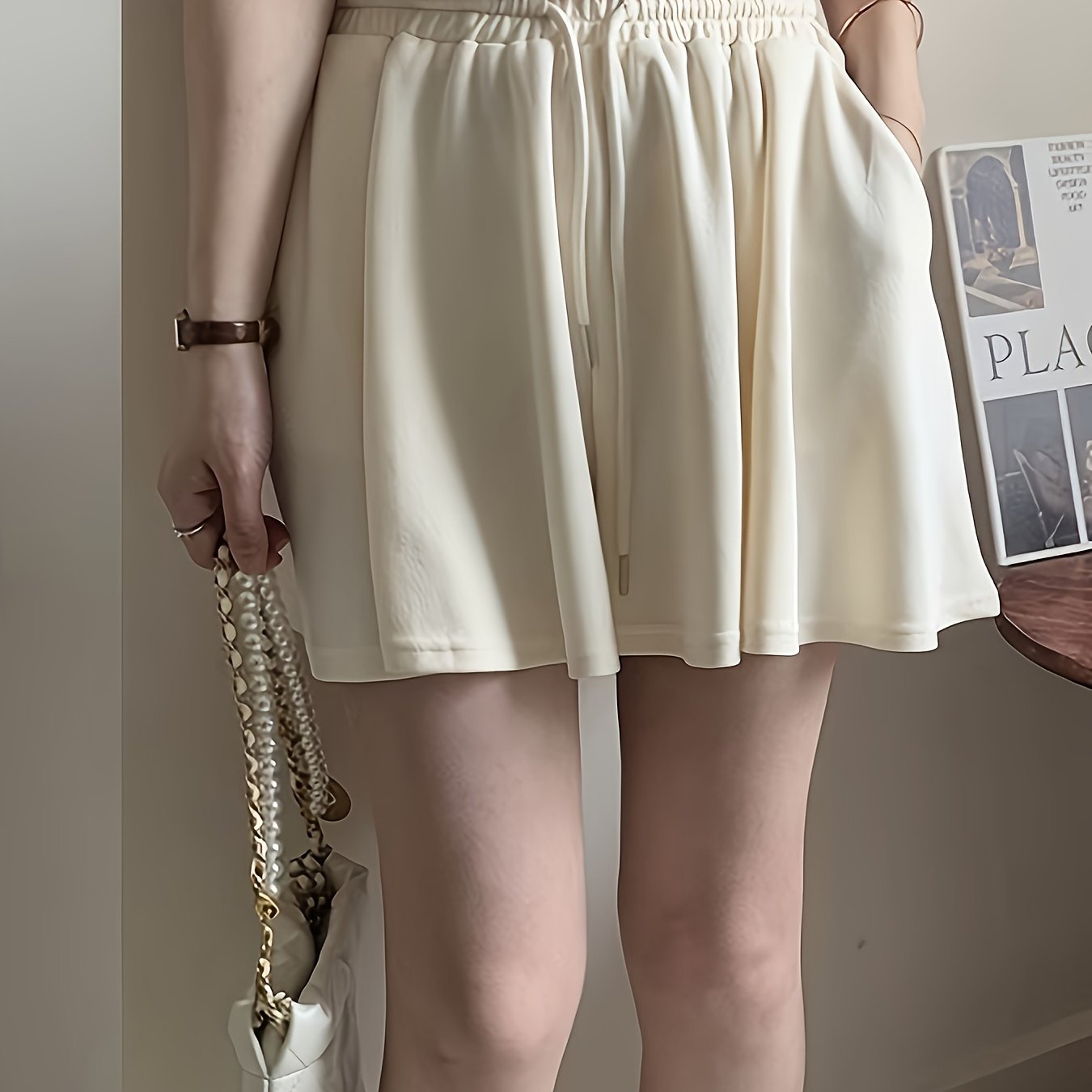 Solid Color Drawstring Waist Shorts, Casual Every Day Baggy Walking Shorts For Spring & Summer, Women's Clothing
