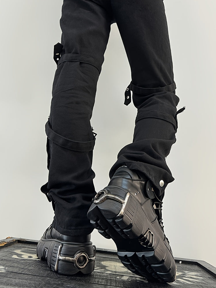 Women's Metallic Decor Platform Sneakers, Punk Rock Lace Up Outdoor Shoes, Comfortable Heel Height Shoes, Gothic Ankle Boots Round Toe Thick Sole Booties plus size